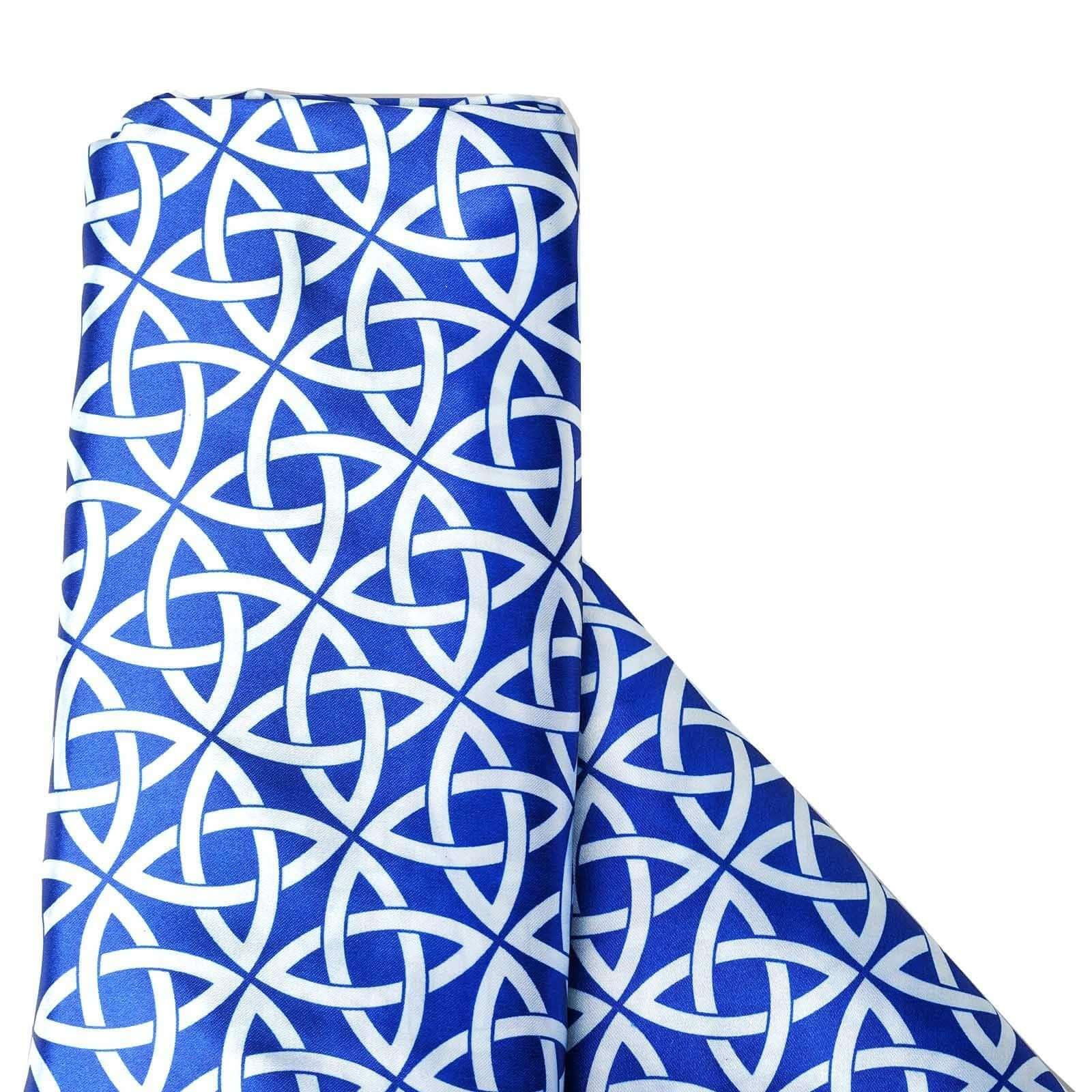Efavormart 54 inch x 10 Yards White Artful Circles Print Satin Fabric Bolt Sewing Craft Bridal Supplies - Royal Blue